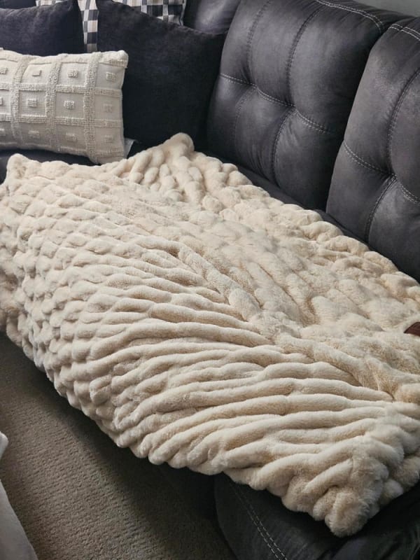Multiple colors and plush materials create a blanket perfect for any room, combining style, comfort, and the ideal weight for relaxation.