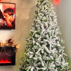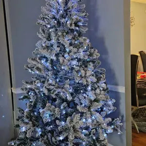 Create a magical winter wonderland with this snowy Christmas tree, featuring 470 LED lights and 1264 realistic, dense branch tips.